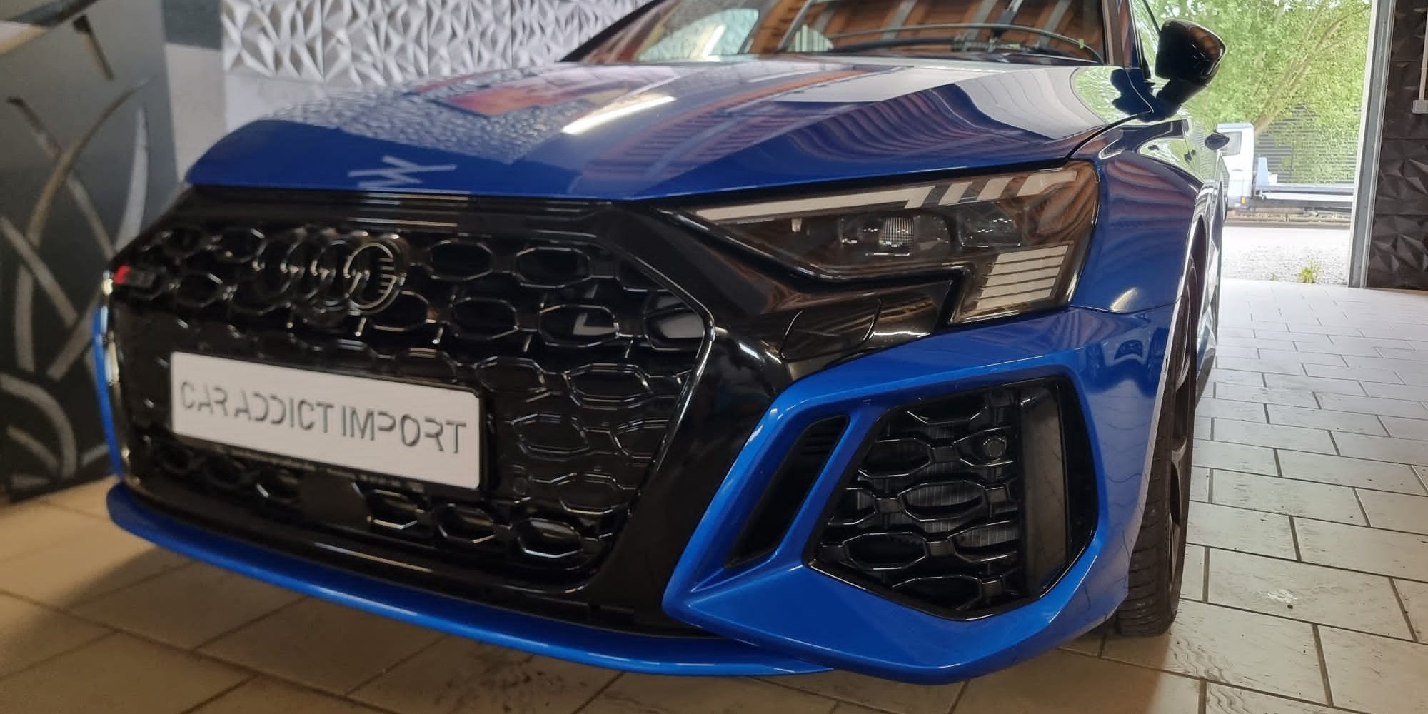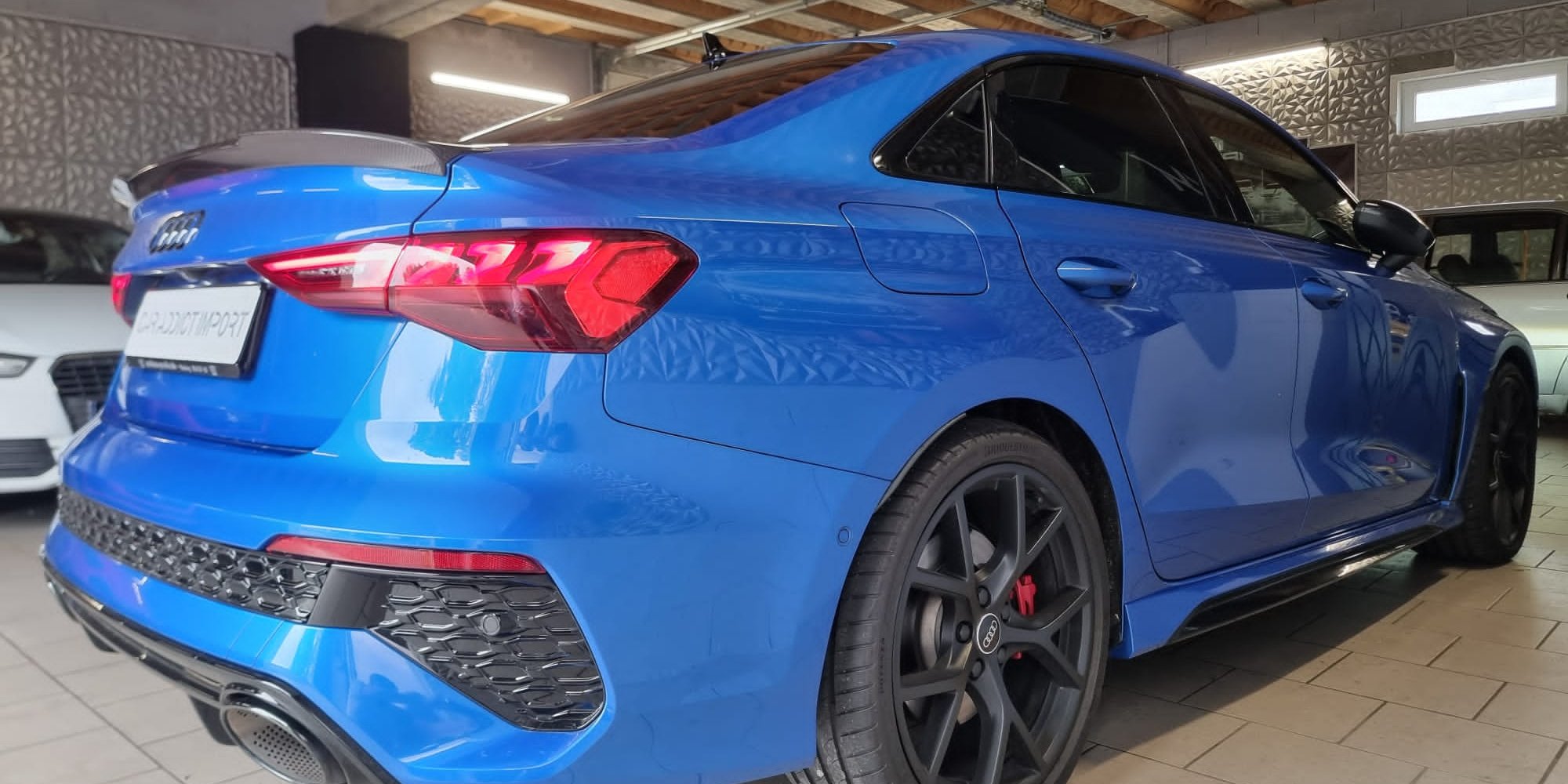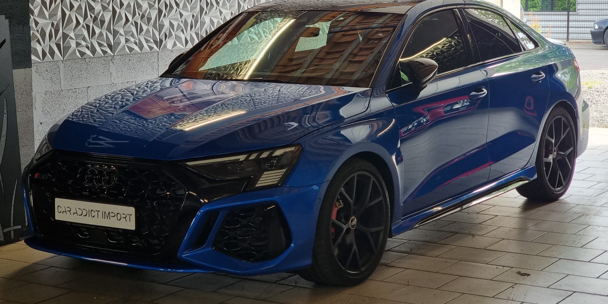 Livraison de cette magnifique Audi RS3 Quattro 400 ch Limousine bleue Ara de Novembre 2022 avec seulement 10 600 kms au compteur.