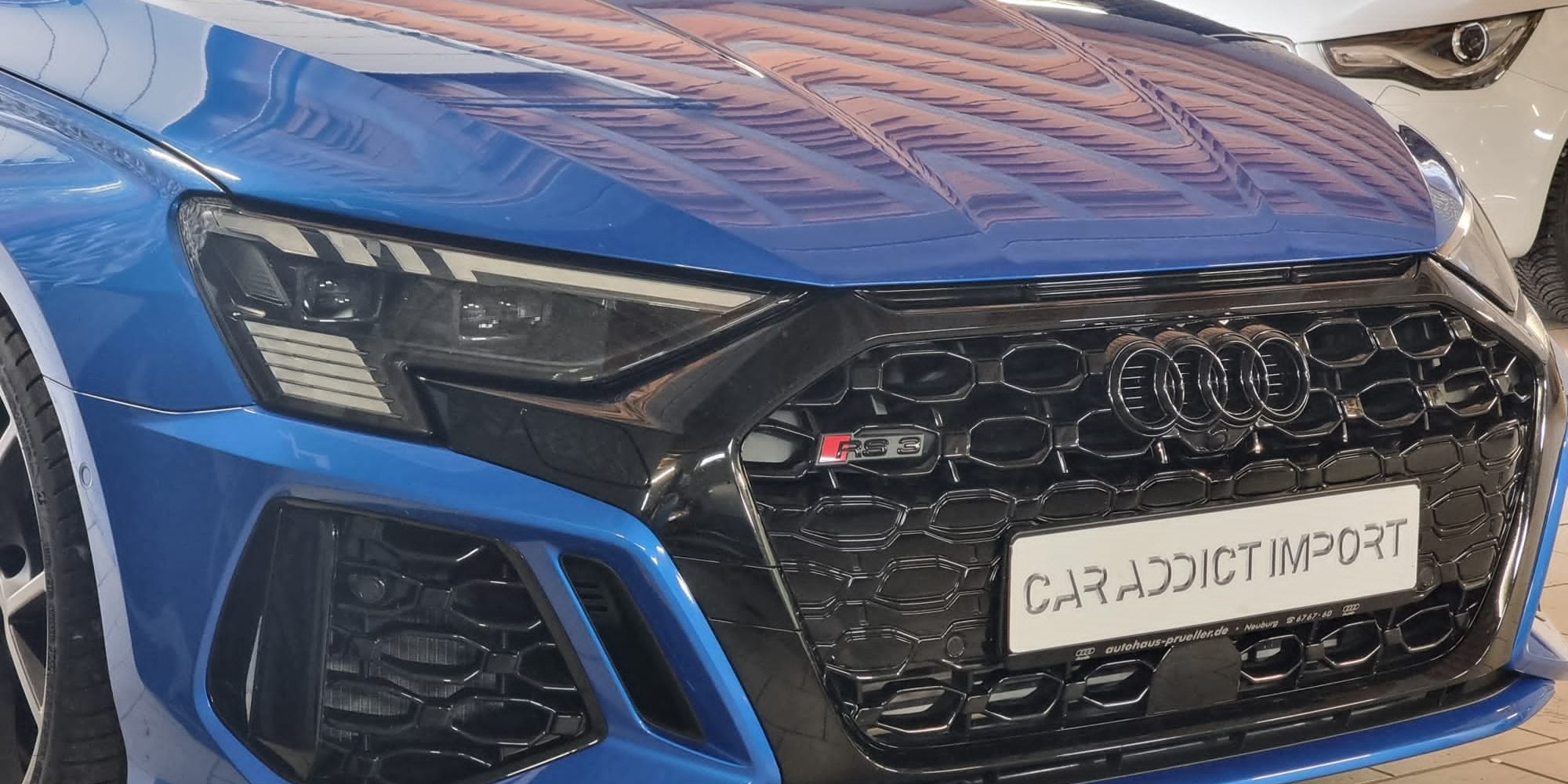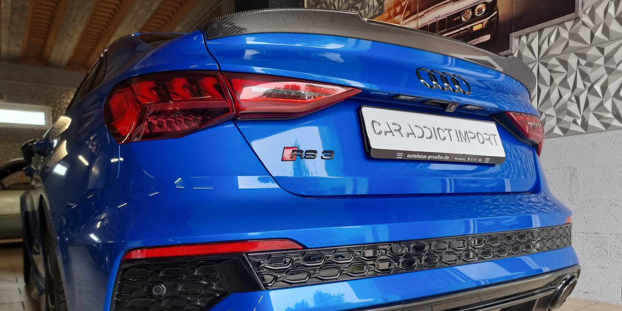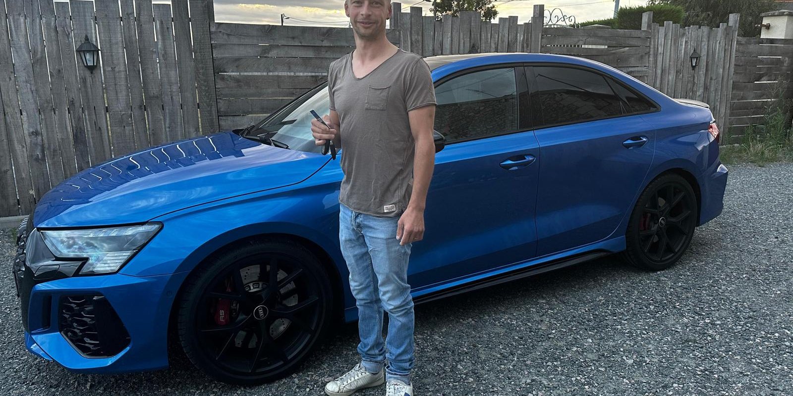 Livraison de cette magnifique Audi RS3 Quattro 400 ch Limousine bleue Ara de Novembre 2022 avec seulement 10 600 kms au compteur.